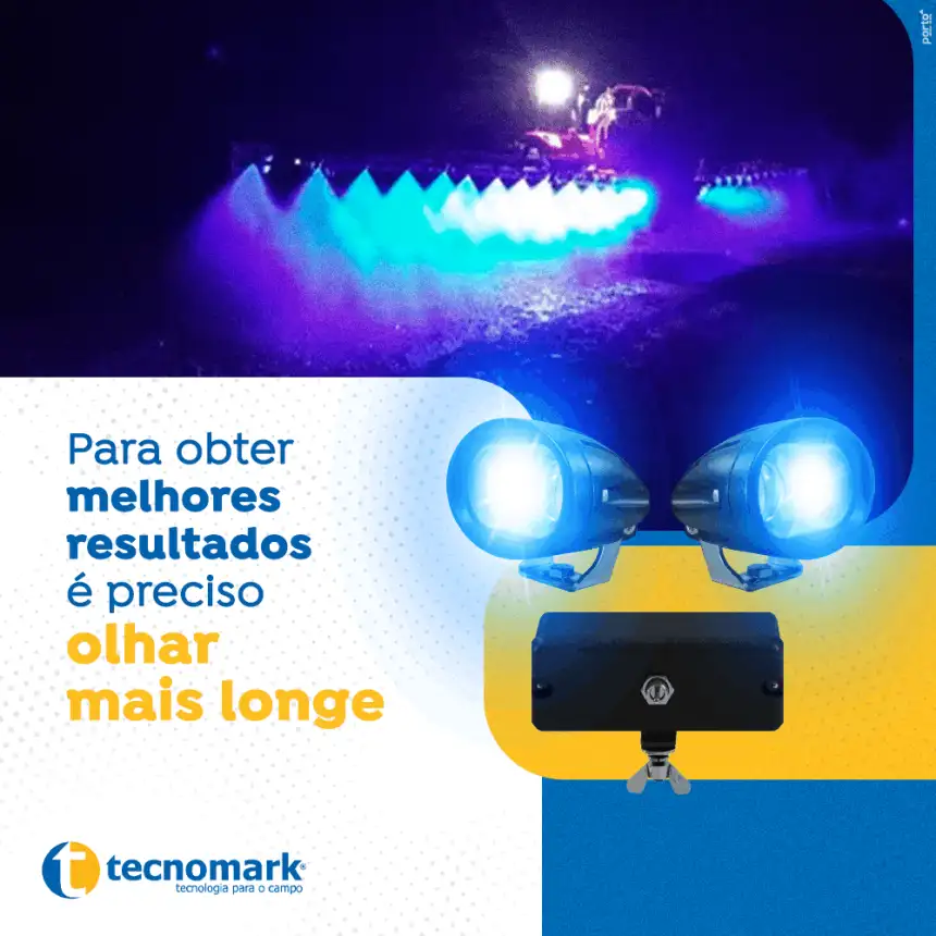 Com o Farol de LED para pulverização noturna você terá mais economia e qualidade na aplicação dos defensivos agrícolas. O Farol de LED possibilita a visualização com perfeição de todos os bicos da barra do pulverizador, identificando falhas e perda de produto.
